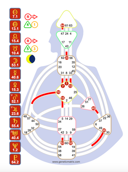 The head center is the metal pressure to think about things, the G center is the compass for individual direction, and the ego direction of the tribe materially on this plane, deals, promises and bargains.