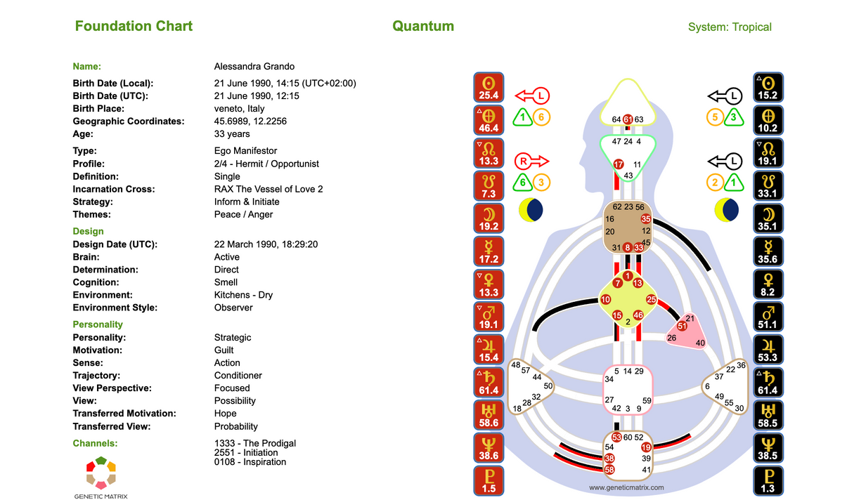 This mission is about finding individual truth in cooperation with others through the mental process of introspection. It is a matter of discovering intellectual ways to understand both the future and the past, which can provide a strategic direction to the collective. I am instinctively aware of the patterns that secure the wellbeing of the community. Owing to this special connection with the past I am capable of creating a feeling of “having been there”, which enables me to point out the right ways. For me, it is about focussing on rational thought processes to find the right moment for cooperation which will make the desired transformation possible. Remaining detached will secure my own wellbeing. In the course of my life I will develop the ability to act as an objective role model within the community, who will be connected, yet not personally involved. My openness and tolerance towards the different-minded are my starting point to unfold my effect on society as a wise talent. And yet, I could be inclined to use ideals for discriminating other people or groups. Based on this mission I have subtle knowledge of the fact that it is important to find a strategy in life which will help mankind survive in the future.
